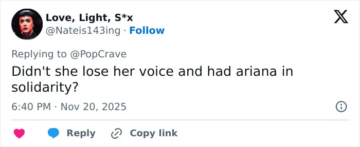 The post was made soon after Variety revealed that Grande would miss upcoming Q&A panels for the movie and cancel her scheduled appearance on The Kelly Clarkson Show, however her co-star Cynthia Erivo would still be there.